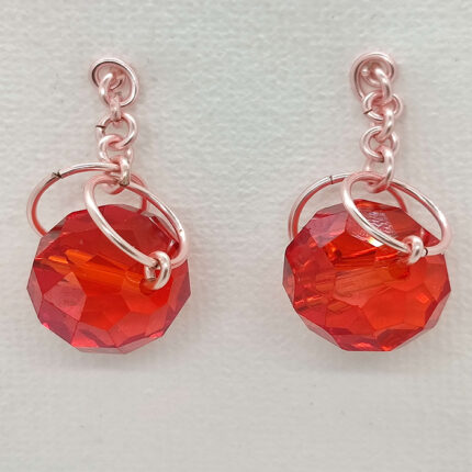Composition : Fil de cuivre 0,8 mm fil de cuivre 0,3 mm, 2 perles de verres oeil de chat, 2 clous maison.
